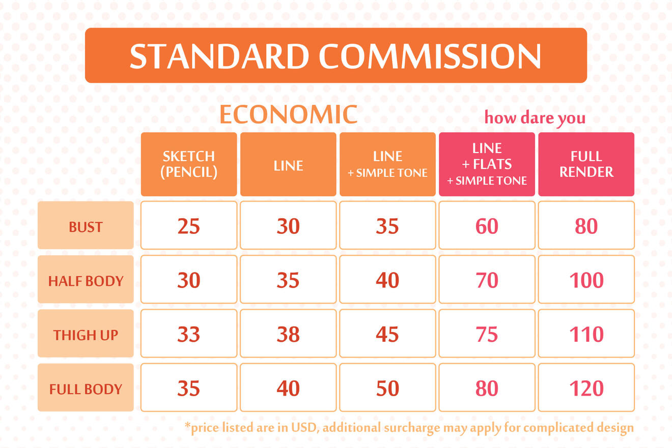 All commissions are for PERSONAL USE only! Not doing commercial rnAbsolutely NO NFTPrice listed are for ONE character only, additional characters in the same artwork are subjected to 100% of the base priceAdditional surcharge may apply depending on the complexity of your request (design/weapon/angle etc) up to 50% of the base priceAll prices are in USDPayment can be made via Stripe or PayPal invoice or Ko-fi donationPayment 100% upfront and non-refundableI reserve the right to decline any commission request for whatever reasonI retain ownership to the copyrights to the artwork created and may post them on social media (like Twitter) as well as using them as a sample artwork for future commission post. May make physical prints out of them, but I will always ask for your permission beforehand!